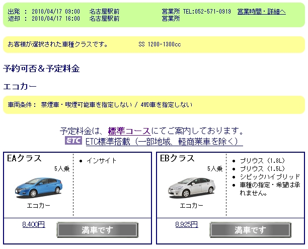 トヨタのお膝元だけど、無難な「ニッポンレンタカー」で 「エコカー」を試しに選んでみた(^_^;) 折角だから、ハイブリッドに乗ってみようかなと・・・ 何と【満車】表示! 人気なのか、台数がないのか?