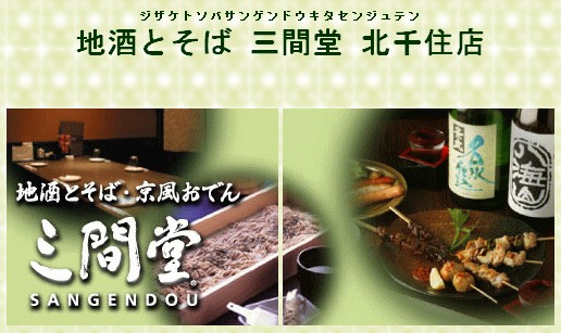 | 【地酒とそば 三間堂 北千住店】 |