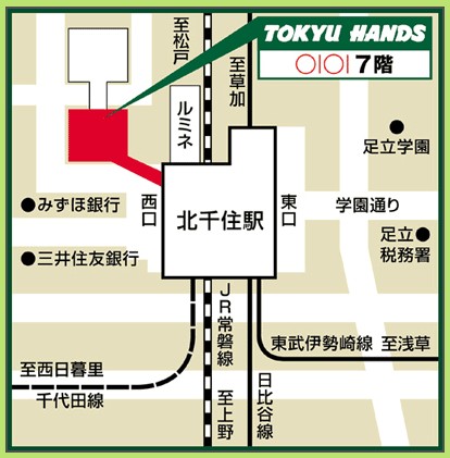 住所:東京都足立区千住3-92 丸井北千住店9F アクセス:JR常磐線北千住駅西口 徒歩1分 アクセス:東武伊勢崎線北千住駅 徒歩1分 アクセス:地下鉄北千住駅 徒歩1分