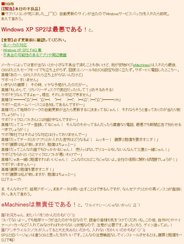 | SEBさん [名誉会員] [38回(452pt)] [2004/9/6(月) 午後10:50:22] |