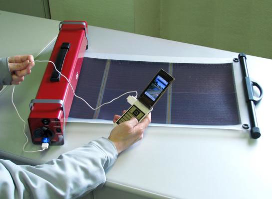 携帯電話が充電できる可搬式の太陽光発電システム |